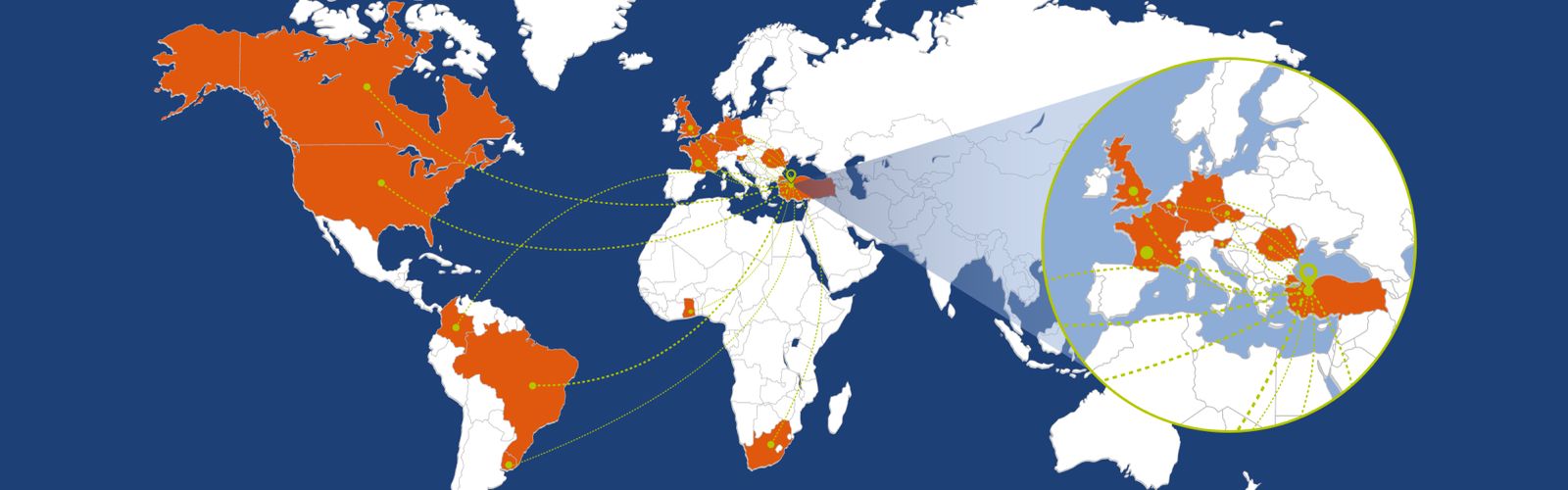 Türkiye merkezli üretim gücümüzü, dünyanın farklı kıtalarına uzanan güçlü bir lojistik ağıyla destekliyoruz. Avrupa’dan Amerika’ya, Afrika’dan Güney Amerika’ya kadar geniş bir coğrafyada müşterilerimize zamanında ve güvenilir sevkiyat gerçekleştiriyoruz.